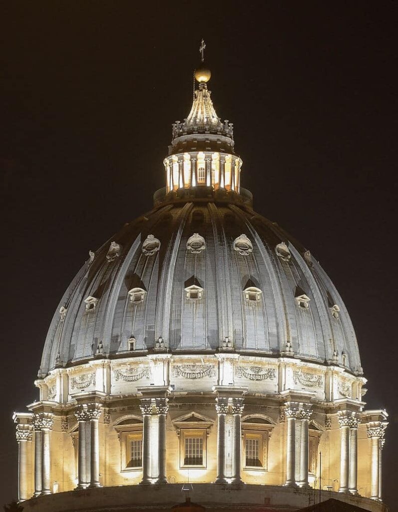 It forms the cover of the cruise of St. Peter’s basilica in the Vatican. It is one of the largest masonry roofs ever built; it has an internal diameter of about 42 meters and brings the overall height of the basilica, from the base to the top of the lantern, to over 130 meters.